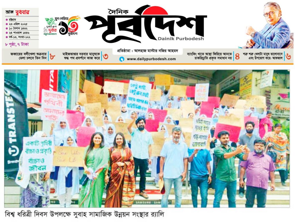 Subah Samajik Unnayan Sangstha observed Earth Day on Tuesday with a student rally, discussion, and awareness campaign held in