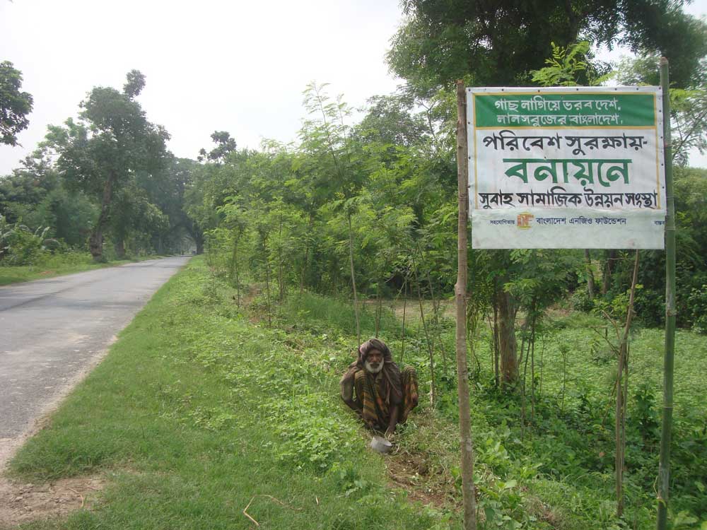 Subah Samajik Unnayan Sangstha has launched an afforestation program along the Meherpur–Chuadanga Road, from Mashuribhaja to Baradi Bazar, aimed at protecting the environment and promoting sustainable green initiatives. The primary goal of this initiative was to restore ecological balance, enhance greenery, and reduce the negative impacts of climate change.