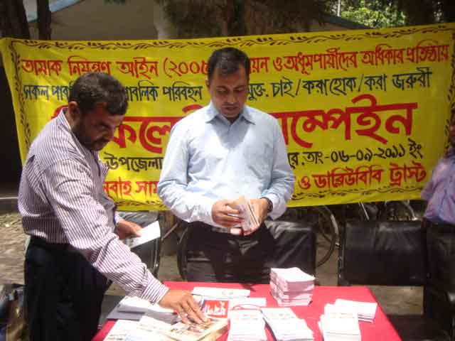 A public awareness leaflet campaign titled “Implementation of the Tobacco Control Act (2005) and Protection of Non-Smokers’ Rights” was successfully organized by Subah Samajik Unnayan Sangstha