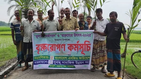 Subah Samajik Unnayan Sangstha has launched an afforestation program along the Meherpur–Chuadanga Road, from Mashuribhaja to Baradi Bazar, aimed