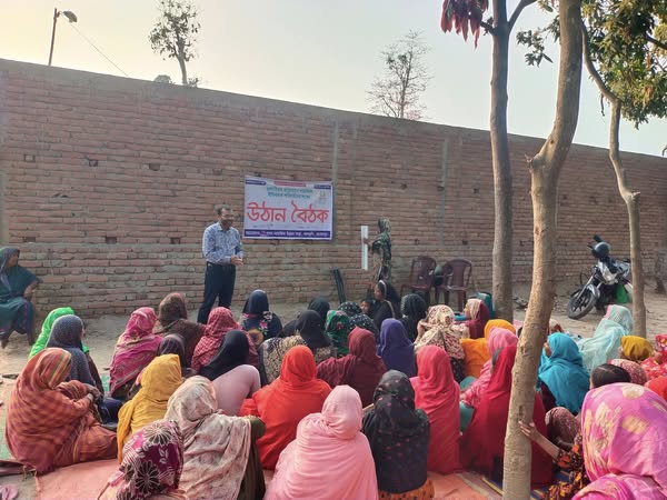 A courtyard meeting (Uthan Baithak) was organized by Subah Samajik Unnayan Sangstha to promote positive social change and raise awareness against child marriage