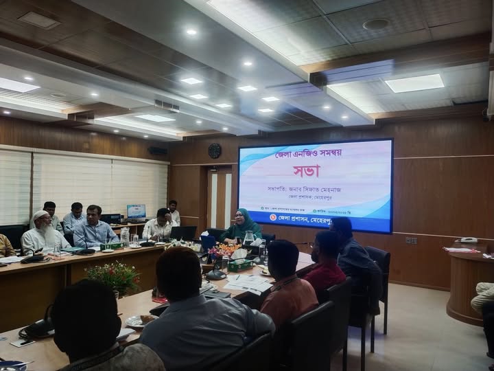 The District NGO Coordination Meeting of Meherpur was held today, presided over by Ms. Sifat Mehnaz, Deputy Commissioner of Meherpur