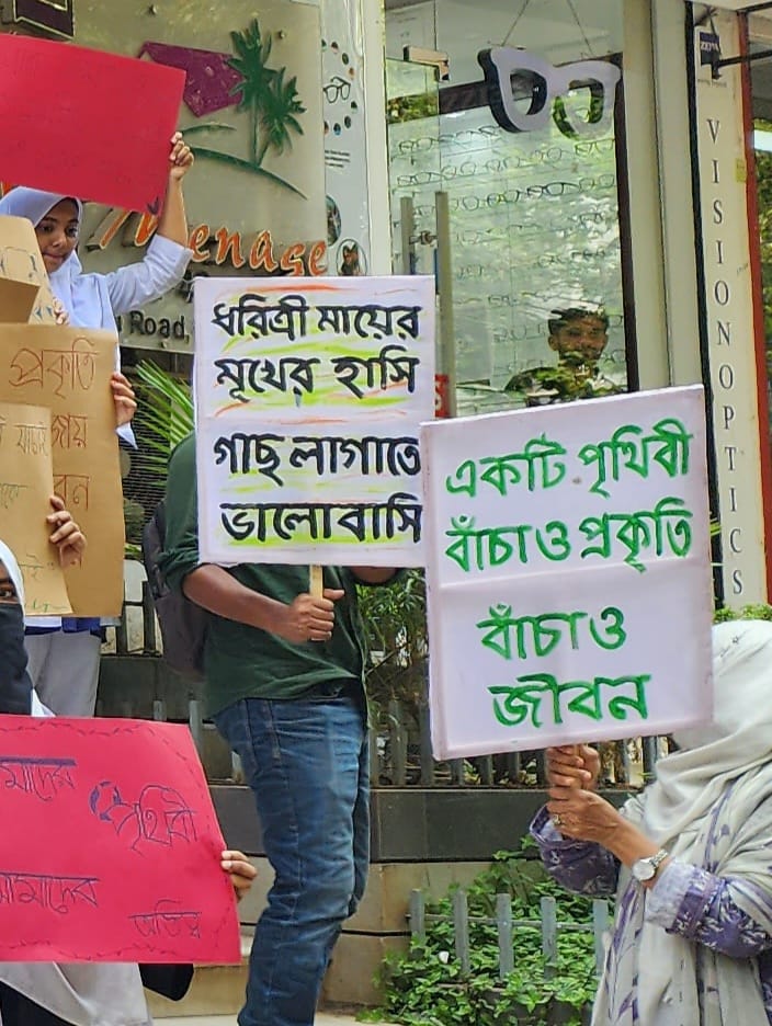 More than 50 students from Shah Waliullah Institute participated in the event, holding handmade placards expressing their commitment to protecting the environment. The event aimed to instill environmental values in the younger generation and encourage collective responsibility toward sustainability.