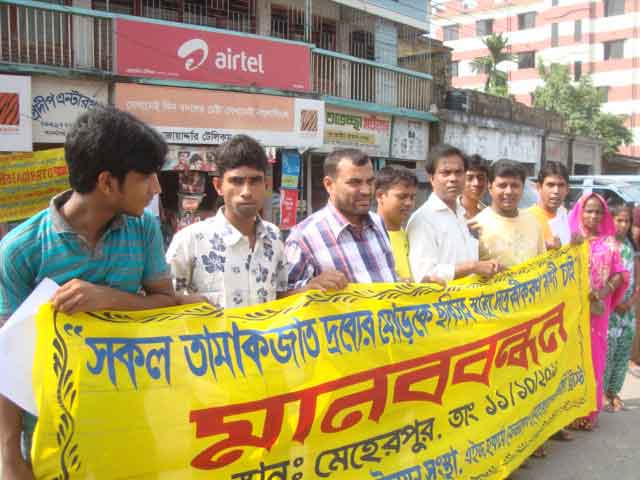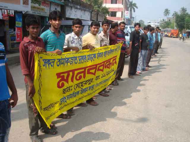 Subah Samajik Unnayan Sangstha, in collaboration with the Bangladesh Anti-Tobacco Alliance, organized a peaceful human chain campaign under the slogan: