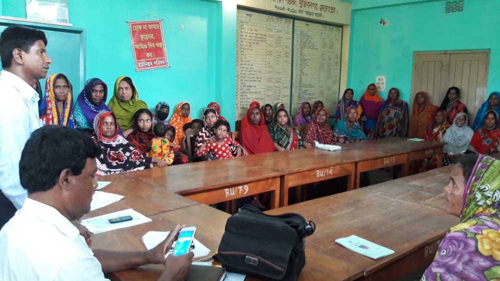 An income-generating training program is being conducted for the Vulnerable Group Development (VGD) beneficiaries of the 2017–2028 cycle at the Dariarpur Union Parishad under Mujibnagar Upazila. The initiative is being implemented by Subah Samajik Unnayan Sangstha with support from the Department of Women Affairs.