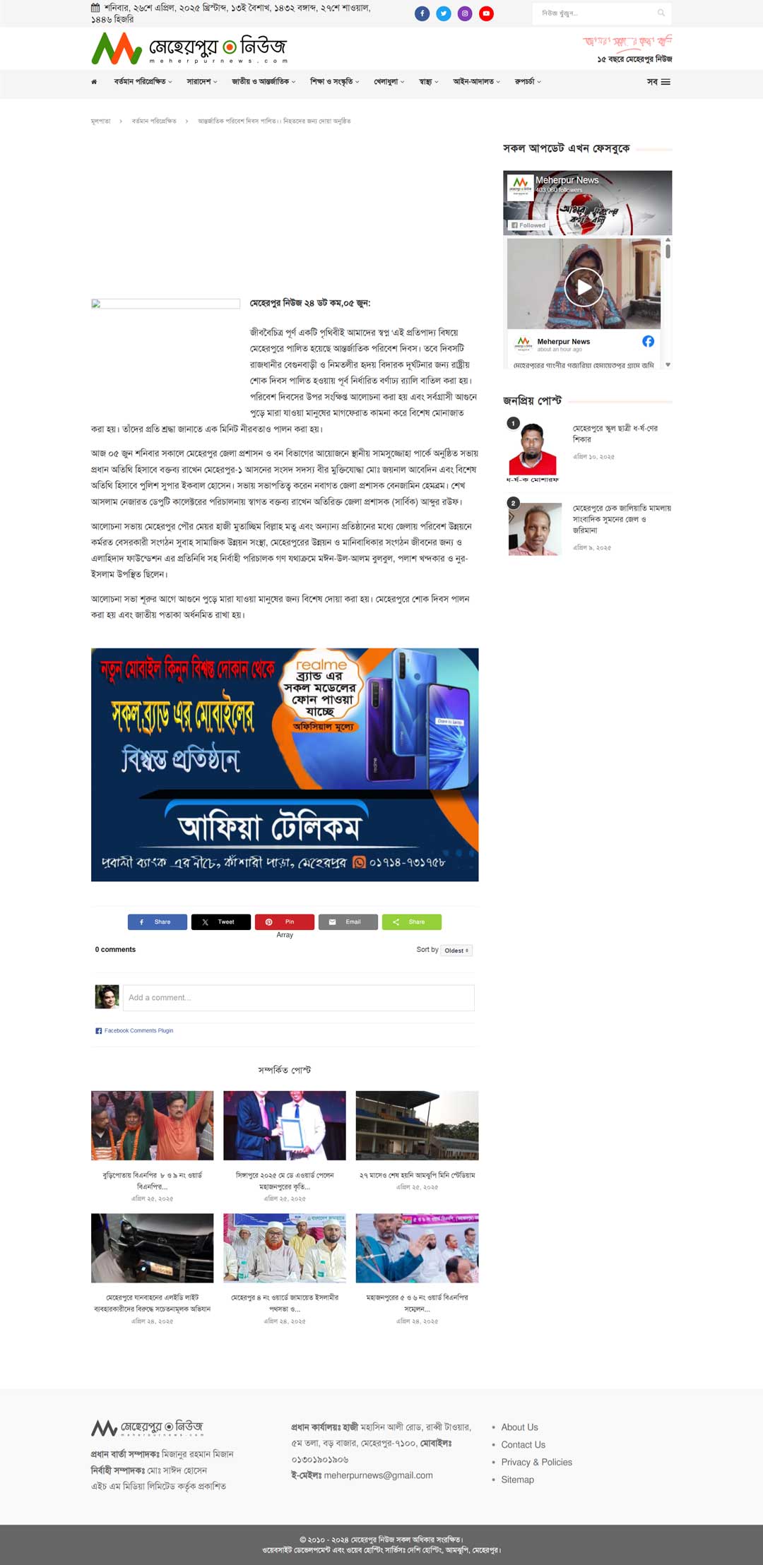 International Environment Day Observed 2010 | Special Prayer Held for the Deceased | Meherpur News