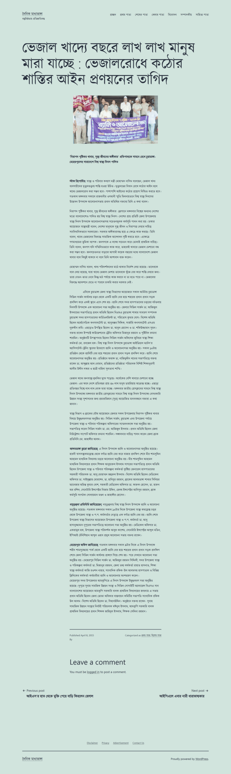 Statistics: More than half of all food in Bangladesh is adulterated. Each year, 3 million people suffer from diarrhea due to unsafe food, and globally millions die. A human chain held by SUPRO in front of the National Press Club demanded stronger measures.