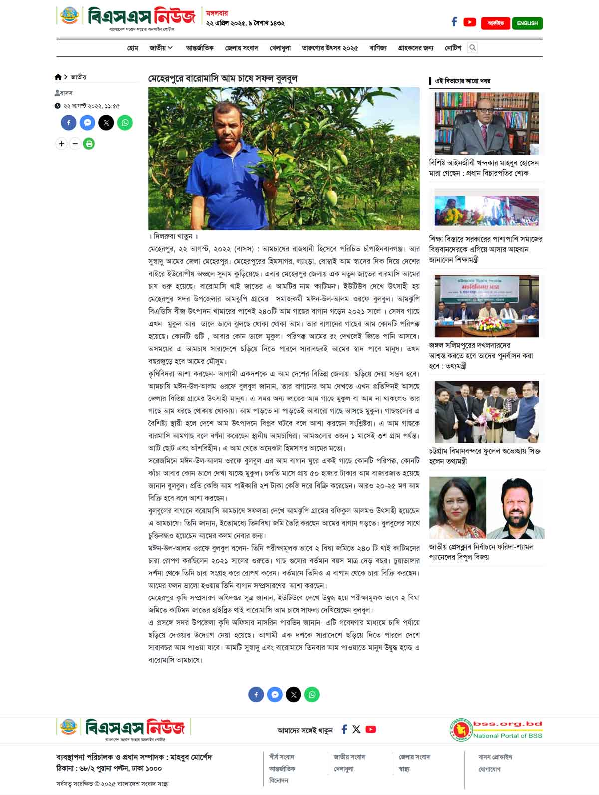 The success of Katimon mango farming in Meherpur has opened new doors of possibility for mango production in Bangladesh. It holds the potential to significantly contribute to the goal of year-round mango availability across the country.