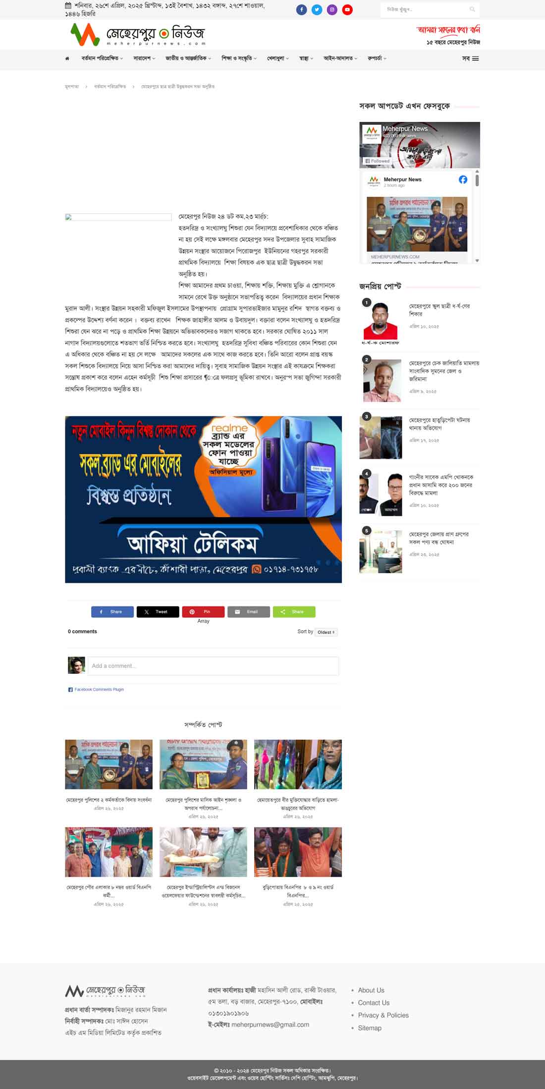 Meherpur News, 23 March 2011: To ensure that underprivileged and minority children are not deprived of access to education, a motivational meeting was held on Tuesday at Gohorpur Government Primary School in Pirojpur Union under Meherpur Sadar Upazila.