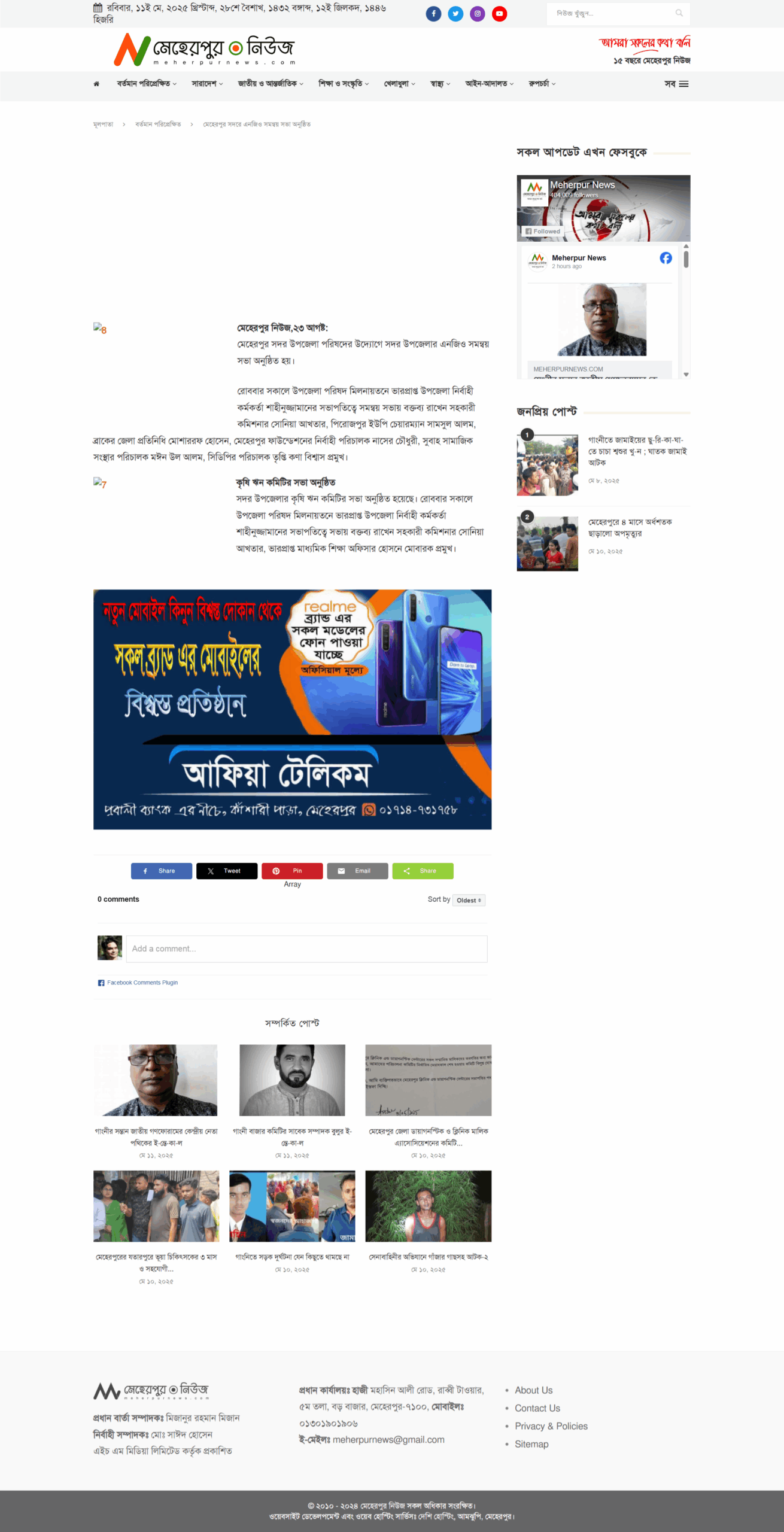 On the same day, a meeting of the Agricultural Loan Committee of Meherpur Sadar Upazila was also conducted at the Upazila Parishad auditorium. This session was also chaired by Acting UNO Shahinuzzaman.