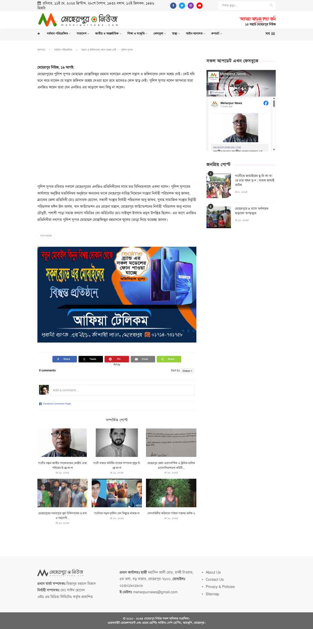 Meherpur News, August 19, 2018, Superintendent of Police Mohammad Mostafizur Rahman firmly stated that there is no room for terrorism or militancy in Bangladesh. “If anyone thinks they can harbor or support terrorism under any guise, they are gravely mistaken—there will be no leniency,” he said.