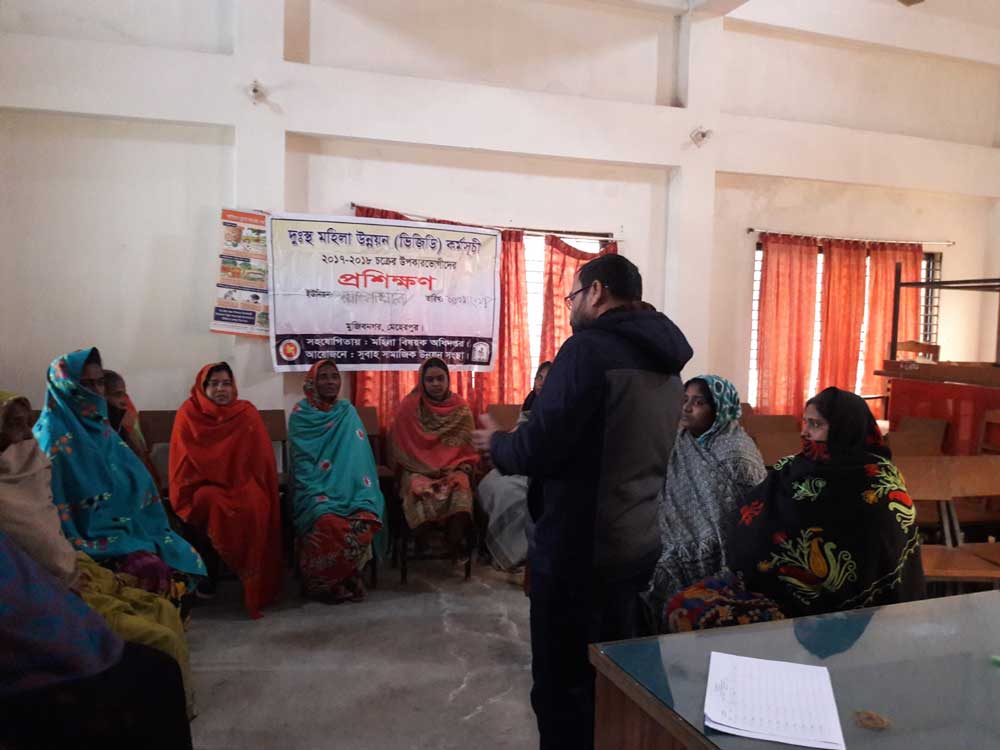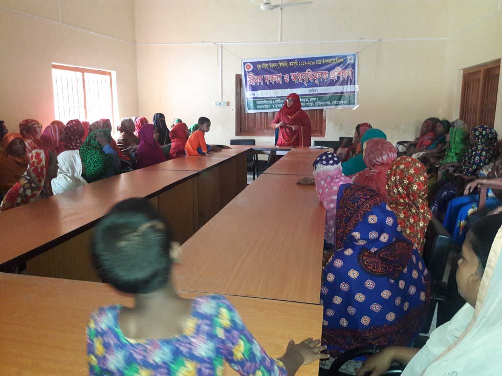 An income-generating training program is being conducted for the Vulnerable Group Development (VGD) beneficiaries of the 2017–2028 cycle at