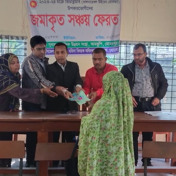 On behalf of the Government of the People’s Republic of Bangladesh, in collaboration with the Department of Women’s Affairs under the Ministry of Women and Children Affairs, the Subah SamajikUnnayanSangstha is implementing the Vulnerable Women Benefits (VWB) Program in 15 unions of Aolamdana of Meherpur district and 9 unions of Gangni upazila.